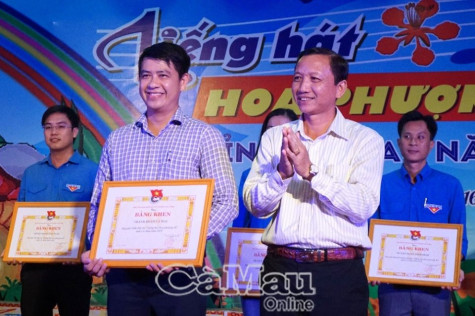 Ông Lưu Văn Vĩnh, Phó trưởng ban Dân vận Tỉnh ủy Cà Mau trao giải Nhất toàn đoàn cho đơn vị TP. Cà Mau.