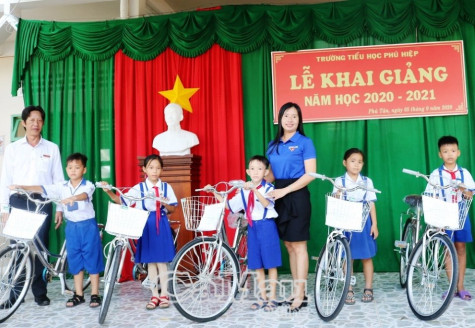 Theo đó, 35 em học sinh thuộc diện hộ nghèo, cận nghèo trên địa bàn xã Phú Tân được hỗ trợ một chiếc xe đạp (trị giá 1 triệu đồng).