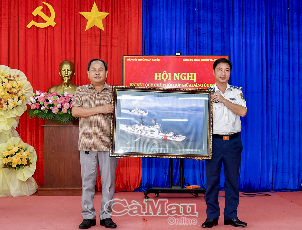 Đảng uỷ Đoàn Đặc nhiệm phòng, chống tội phạm ma tuý số 4 tặng Đảng uỷ Phường An Xuyên bức tranh tàu Cảnh sát biển Việt Nam.