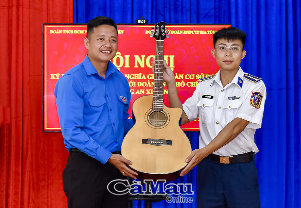 Đoàn cơ sở Đoàn Đặc nhiệm phòng, chống tội phạm ma tuý số 4 tặng Đoàn phường An Xuyên 6 cây đàn ghita.