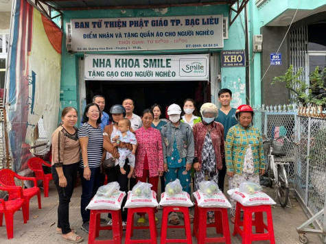 Nhiều năm nay, đều đặn vào ngày 15 mỗi tháng, Ban từ thiện Phật giáo TP. Bạc Liêu lại phối hợp với hệ thống Nha khoa SMILE chi nhánh Bạc Liêu tổ chức tặng 100 phần gạo cho người dân có hoàn cảnh khó khăn, đối tượng thuộc diện bào trợ xã hội. Ban từ thiện còn thường xuyên vận động mạnh thường quân tặng gạo, nhu yếu phẩm cho người khuyết tật, người nghèo.