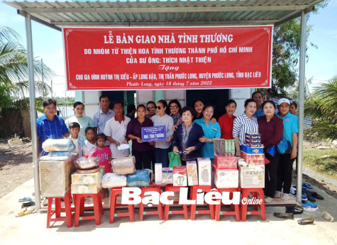 Cũng giống như chị Trang, nhiều hội viên, phụ nữ nghèo cũng ấm lòng khi được các cấp Hội LHPN huyện Phước Long quan tâm, hỗ trợ mái ấm kiên cố để trú ngụ. Đơn cử như trường hợp của chị Huỳnh Thị Xiếu (ở ấp Long Hậu, TT. Phước Long). Chị Xiếu là hội viên phụ nữ thuộc diện hộ nghèo, không đất sản xuất, có hoàn cảnh khó khăn về nhà ở. Mới đây, trong một đợt dông lốc lớn, căn nhà bị sập hoàn toàn, cả gia đình 4 người phải sống cảnh màn trời chiếu đất. Cảm thương trước hoàn cảnh của chị, Hội LHPN TT. Phước Long thông qua Ban từ thiện Phật giáo TP. Bạc Liêu đã vận động nhóm từ thiện Hoa tình thương (TP. Hồ Chí Minh) hỗ trợ chị Xiếu căn nhà trị giá 55 triệu đồng. Ngày bàn giao nhà, đoàn từ thiện còn tặng 3 suất học bổng trị giá 10 triệu đồng cho 3 đứa con của chị, đồng thời tặng thêm nhiều vật dụng dùng trong sinh hoạt hàng ngày, giúp gia đình có điều kiện sống tốt hơn.