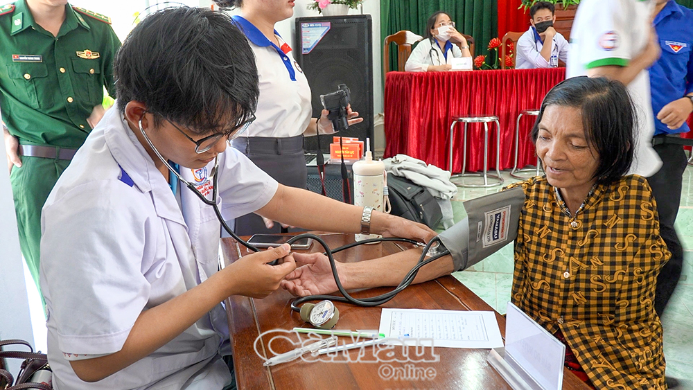 Các y, bác sĩ trẻ tận tình thăm khám và tư vấn sức khoẻ cho bà con.