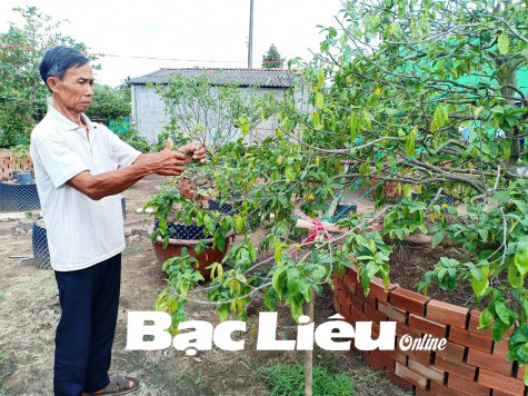 Ông Lý Văn Quân tạo dáng cho cây mai vàng. Ảnh: T.Q