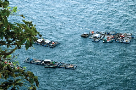 | Người dân nuôi cá lồng bè xung quanh hòn. |