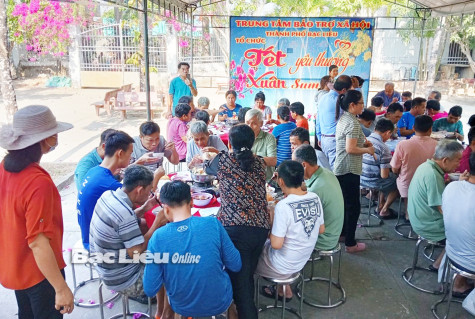 Bữa cơm tất niên ở Trung tâm Bảo trợ xã hội TP. Bạc Liêu. Ảnh: T.Q