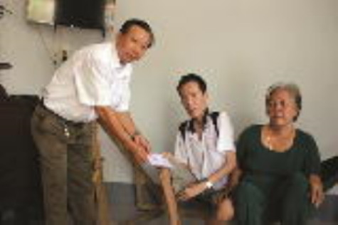 | Đại diện Hội Nạn nhân CĐDC/dioxin xã Tắc Vân trao quà cho gia đình ông Nguyễn Thành Luông ở Ấp 3. |