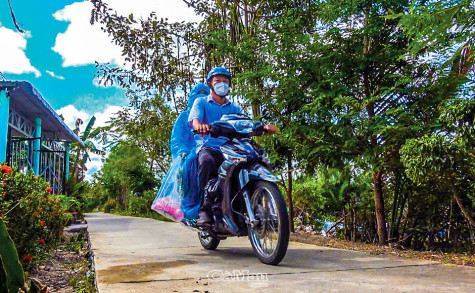 | Tổ lấy mẫu di chuyển đến nhà hộ dân. |