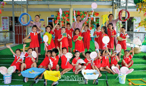 (CMO) Ðến Trường Mầm non Hướng Dương, thị trấn Sông Ðốc, huyện Trần Văn Thời, quan sát từ khuôn viên đến phòng học đều nhận thấy sự mát mẻ, sạch sẽ. Quanh trường được các cô giáo trang trí nhiều hoa, những đồ chơi từ vật dụng tái chế vừa đẹp mắt, vừa giúp trẻ vận động, học tập, tìm hiểu môi trường xung quanh… Thật sự đây là một môi trường lý tưởng để trẻ vui chơi, sáng tạo và học tập.