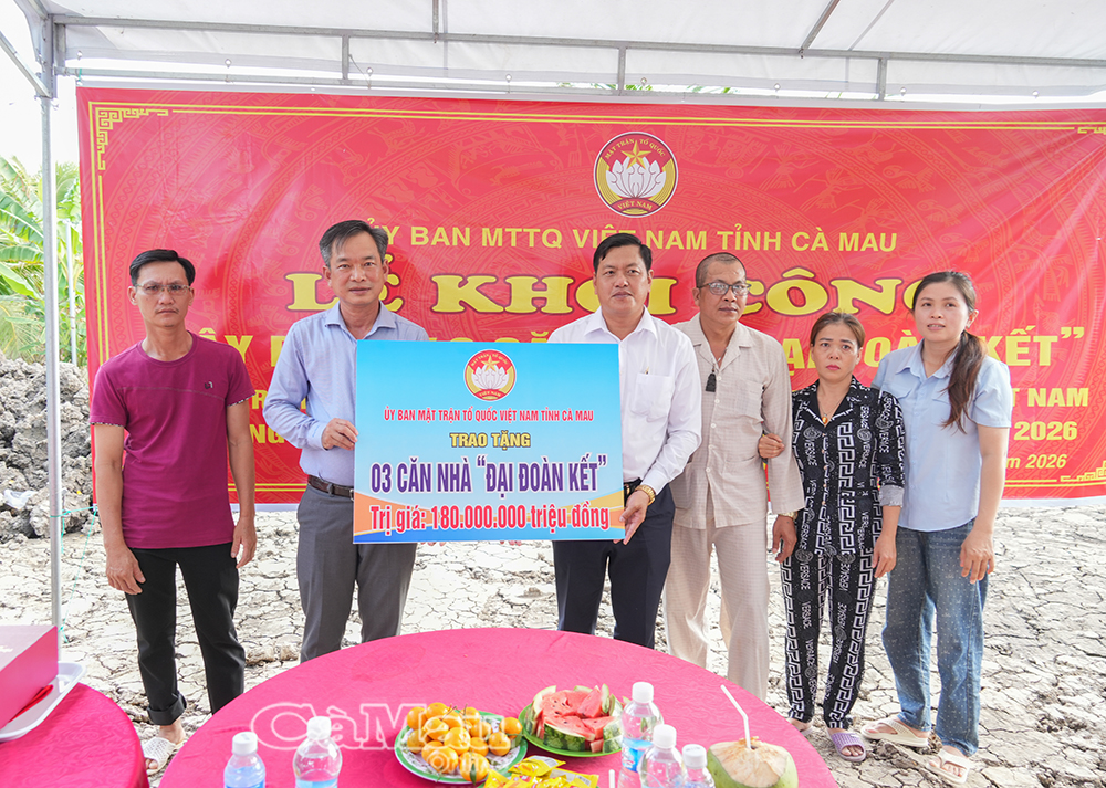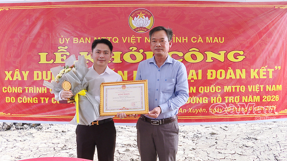 Chiều 8/4, tại phường An Xuyên, Uỷ ban MTTQ Việt Nam tỉnh Cà Mau phối hợp Tập đoàn Phú Cường tổ chức lễ khởi công xây dựng 40 căn nhà "Đại đoàn kết". Đây là công trình ý nghĩa chào mừng Đại hội Đại biểu toàn quốc MTTQ Việt Nam lần thứ XI, nhiệm kỳ 2026-2031.