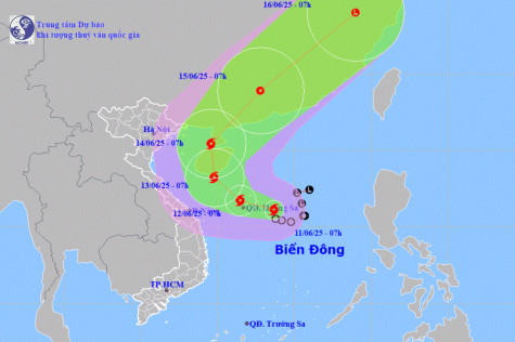 Theo Trung tâm Dự báo khí tượng thủy văn quốc gia, sáng 11/6, áp thấp nhiệt đới trên khu vực phía đông quần đảo Hoàng Sa đã mạnh lên thành bão - cơn bão số 1 năm 2025, có tên quốc tế là Wutip.