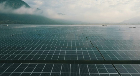 | Nhà máy điện năng lượng mặt trời Sao Mai dưới chân núi Cấm. |