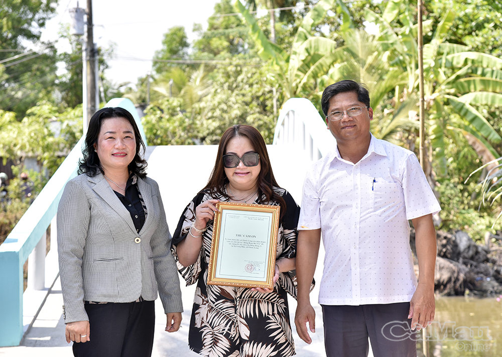 Xúc động tại buổi lễ, bà Trần Kim Loan chia sẻ: “Dù sinh sống và làm việc ở nơi xa nhưng lòng tôi luôn hướng về quê hương. Việc tài trợ xây dựng cây cầu này là món quà nghĩa tình mà tôi mong muốn gửi tặng nơi chôn nhau cắt rốn của mình”.