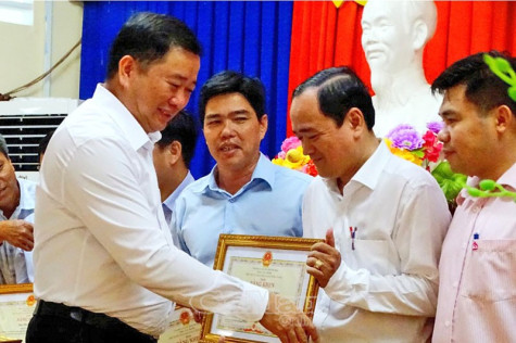 | Phó chủ tịch UBND tỉnh Thân Đức Hưởng, Trưởng ban Đề án trao bằng khen cho các tập thể có thành tích xuất sắc đóng góp hoạt động của đề án. |