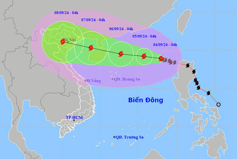 Từ ngày 5 - 6/9, bão số 3 (bão Yagi) có thể đạt cấp bão rất mạnh trên vùng biển phía Bắc của khu vực Bắc Biển Đông, gió mạnh có thể lên tới cấp 14, giật cấp 17 ở vùng gần tâm bão, sóng biển có thể tăng cao lên 7 - 9m.
