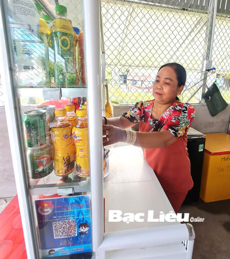 Bà Thạch Thị Dung sắp xếp lại hàng quán trước nhà. Ảnh: T.Q
