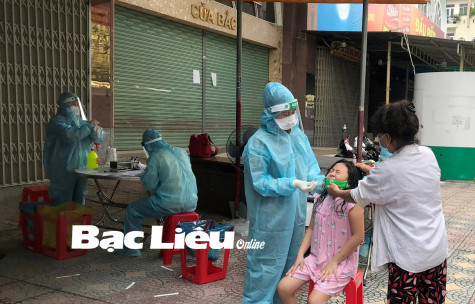 Trung tâm Kiểm soát bệnh tật tỉnh lấy mẫu xét nghiệm tầm soát COVID-19 cho trẻ em trên địa bàn Phường 3 (TP. Bạc Liêu).