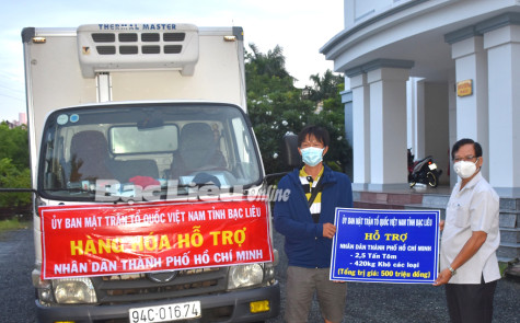 Đây là đợt thứ 3 Bạc Liêu chuyển hàng hóa hỗ trợ Nhân dân TP. Hồ Chí Minh đang gặp khó khăn do dịch COVID-19. Chuyến hàng lần này gồm 2,5 tấn tôm đông lạnh, 420 kg khô các loại. Được biết, số hàng hóa lần này do Công ty cổ phần chế biến thủy sản Minh Hải (Láng Trâm), Công ty TNHH MTV Chế Biến Thủy Hải Sản Xuất Nhập Khẩu Thiên Phú, Công ty cổ phần Chế biến Thủy sản Xuất khẩu Âu Vững (đều thuộc TX. Giá Rai) và Đảng bộ, Nhân dân huyện Phước Long, Nhân dân TP. Bạc Liêu ủng hộ. Tổng trị giá hàng hóa tỉnh Bạc Liêu hỗ trợ đợt 3 cho Nhân dân TP. Hồ Chí Minh là 500 triệu đồng.