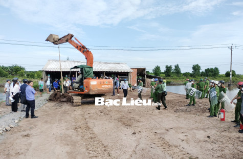 Cưỡng chế thu hồi đất thuộc Tiểu dự án 10 tại huyện Đông Hải. Ảnh: Quốc Quý