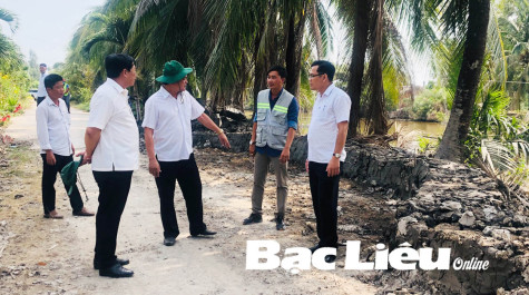 Lãnh đạo huyện Hồng Dân kiểm tra công tác xây dựng lộ nông thôn tại xã Ninh Thạnh Lợi. Ảnh: K.P