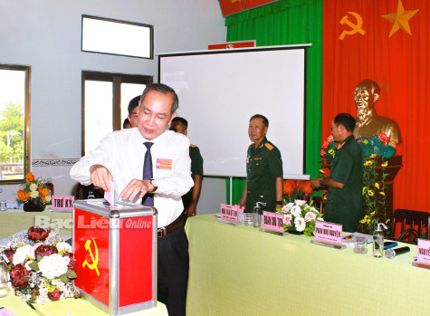 Đồng chí Phan Như Nguyện - Bí thư Thành ủy, Bí thư Đảng ủy Quân sự TP. Bạc Liêu khóa XIV bỏ phiếu bầu Ban Chấp hành Đảng bộ Quân sự thành phố khóa XV, nhiệm kỳ 2020 - 2025. Ảnh: N.Q