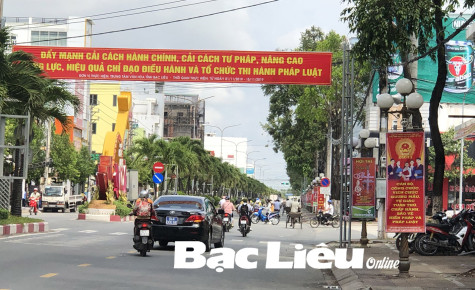 Tuyên truyền về Ngày Pháp luật vào tháng 11 hàng năm trên các tuyến đường nội ô TP. Bạc Liêu. Ảnh: K.P