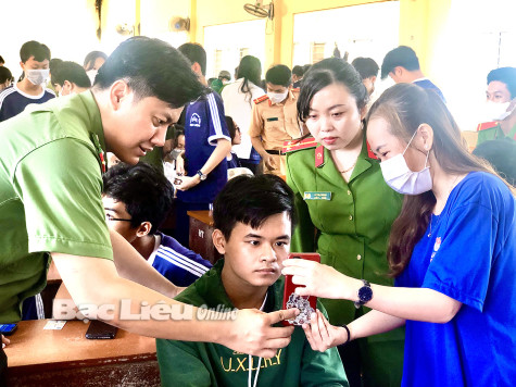 Tuyên truyền, hướng dẫn học sinh Trường THPT Bạc Liêu cài đặt, sử dụng ứng dụng định danh điện tử mức 2, phục vụ cung cấp dịch vụ công trực tuyến. Ảnh: N.Q