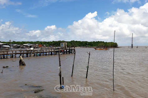 Chúng tôi tìm về khu vực giao nhau giữa 2 vùng biển Đông - Tây ở cửa Vàm Xoáy thuộc xã Đất Mũi, huyện Ngọc Hiển. Đó là khu vực hơn 8 năm qua ghi nhận nhiều sự xâm lấn từ biển nhất, nhì trong tỉnh. Những vành đai rừng phòng hộ chắn sóng dày hàng ki-lô-mét vươn ra biển giờ đã là những khoảnh đất chỏng chơ, còi cọc.