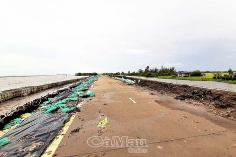 | Tháng 8/2019, hiện tượng nước biển dâng cục bộ đã tràn mặt đê biển Tây, uy hiếp vùng sản xuất phía trong đê, tỉnh Cà Mau đã ban bố tình trạng khẩn cấp. |