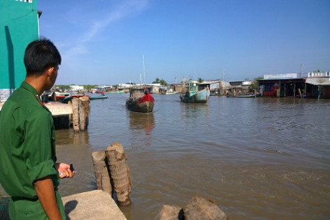 | CBCS Đồn Biên phòng Cái Đôi Vàm kiểm đếm tàu thuyền. |