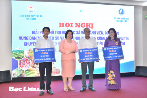 Chiều 11/12, Liên minh Hợp tác xã (HTX) Việt Nam phối hợp với UBND tỉnh Bạc Liêu tổ chức hội nghị: Giải pháp hỗ trợ HTX và thành viên, đồng bào vùng dân tộc thiểu số và miền núi ứng dụng công nghệ thông tin chuyển đổi số vào hoạt động sản xuất và tiêu thụ sản phẩm. Tham dự hội nghị có đồng chí Cao Xuân Thu Vân - Bí thư đảng đoàn, Chủ tịch Liên minh HTX Việt Nam; đại diện một số viện, trường, Liên minh HTX một số tỉnh, thành… Về phía tỉnh Bạc Liêu có đồng chí Huỳnh Chí Nguyện - Phó Chủ tịch UBND tỉnh; đại diện một số sở, ban, ngành có liên quan.