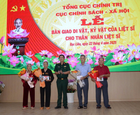 Tại buổi lễ, Đại tá Đỗ Đại Cường - Phó trưởng phòng Hậu phương Quân đội (Cục Chính sách - Xã hội) đã bàn giao nhiều di vật, kỷ vật của liệt sĩ cho thân nhân gia đình như: giấy báo tử, sổ tay; ảnh truy điệu, đưa tang, an táng, khăn tang của liệt sĩ khi đồng đội ông hy sinh. Đồng thời, tặng quà cho các gia đình có công với cách mạng của tỉnh Bạc Liêu. Dịp này, Bộ CHQS tỉnh cũng tặng quà tri ân đến các gia đình liệt sĩ, người có công.