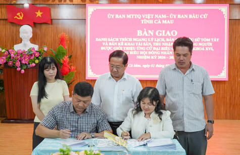 Chiều tối 1/2, Uỷ ban Bầu cử tỉnh Cà Mau tổ chức hội nghị bàn giao hồ sơ những người ứng cử đại biểu Quốc hội khoá XVI và đại biểu HĐND tỉnh, nhiệm kỳ 2026-2031 cho Ban Thường trực Uỷ ban MTTQ Việt Nam tỉnh Cà Mau.