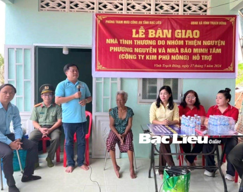 Chiều 17/5, UBND xã Vĩnh Trạch Đông (TP. Bạc Liêu) phối hợp với mạnh thường quân tổ chức bàn giao nhà tình thương cho hộ bà Lâm Thị Bông (86 tuổi, ấp biển Đông B, xã Vĩnh Trạch Đông).