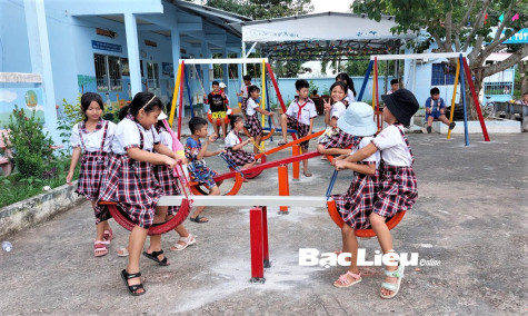 (BL-ĐKC) Huyện đoàn, Hội đồng Đội huyện Hòa Bình vừa bàn giao sân chơi cho thiếu nhi tại Trường tiểu học Vĩnh Bình C (xã Vĩnh Bình, huyện Hòa Bình). Sân chơi được xây dựng từ nguồn Quỹ Kế hoạch nhỏ năm học 2022 - 2023 và sự đóng góp của cán bộ, giáo viên trường với tổng kinh phí xây dựng gần 12 triệu đồng.