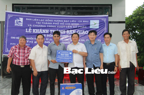 Ban liên lạc đồng hương Bạc Liêu - Cà Mau tại TP. Hồ Chí Minh bàn giao nhà đồng hương tại xã Phong Tân (TX. Giá Rai). Ảnh: N.Q