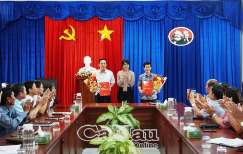 Trưởng Ban Tổ chức Tỉnh ủy Cà Mau, đồng chí Huỳnh Thị Thanh Loan trao quyết định cho ông Trương Đăng Khoa và ông Nguyễn Minh Phụng