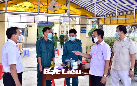 Lãnh đạo Huyện ủy, UBND huyện Vĩnh Lợi kiểm tra, chỉ đạo lực lượng làm nhiệm vụ tại chốt kiểm soát COVID-19 xã Hưng Thành (huyện Vĩnh Lợi) - giáp ranh với Sóc Trăng.