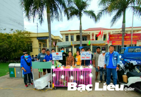 Quầy ăn vặt đường phố của bạn Trần Văn Tiếng (Bí thư Chi đoàn khóm 6, Phường 2, TP. Bạc Liêu) trong ngày khai trương. Ảnh: Đ.K.C