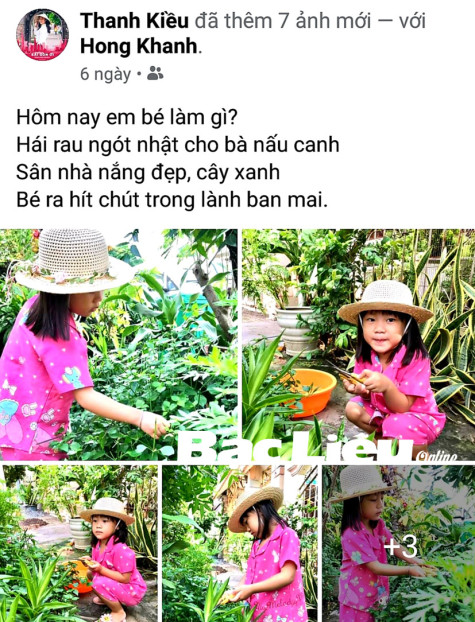 Một bạn trẻ chia sẻ khoảnh khắc đáng yêu của cô con gái nhỏ bên khu vườn xanh mướt những ngày giãn cách trên Facebook cá nhân. Ảnh chụp từ màn hình Facebook: Đ.K.C
