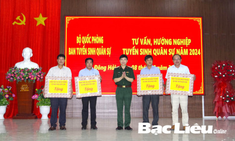 Sáng 8/5, tại UBND huyện Đông Hải, Đoàn công tác Ban Tuyển sinh quân sự Bộ Quốc phòng do Trung tướng, Tiến sĩ Nguyễn Văn Oanh - Cục trưởng Cục Nhà trường, Bộ Tổng Tham mưu, Phó Trưởng Ban Tuyển sinh quân sự Bộ Quốc phòng làm trưởng đoàn, đã tổ chức kiểm tra công tác sơ tuyển và tuyên truyền hướng nghiệp tuyển sinh quân sự trên địa bàn tỉnh Bạc Liêu năm 2024.