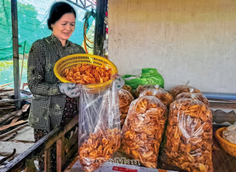 (CMO) Những ngày giáp Tết, nhà ông Tư Khởi (Lê Văn Khởi, ấp Rạch Cui, xã Khánh Bình, huyện Trần Văn Thời) bận rộn từ sáng sớm cho đến tối muộn với việc làm bánh quê: chuối sấy, bánh kẹp cuốn, bánh nhúng. Vợ chồng ông Tư Khởi cùng hai cô con gái thứ ba và út, ai cũng có việc riêng của mình. Ông Tư Khởi thì phụ trách đốn chuối, phụ lột và bào chuối cùng con gái út, con gái thứ ba thì nướng bánh kẹp, còn việc chiên chuối sấy thì bà Trần Thị Hạnh, vợ ông Tư Khởi, đảm đương.