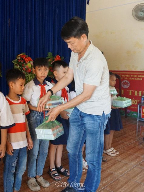 (CMO) Nhằm tiếp sức học sinh vùng sâu bước vào năm học mới, Báo Cà Mau đã phối hợp Công an thị trấn Sông Đốc (huyện Trần Văn Thời) vận động các doanh nghiệp trên địa bàn tỉnh, trao tặng 50 suất quà cho học sinh khó khăn tại xã Tân Bằng, huyện Thới Bình, sáng ngày 12/8.