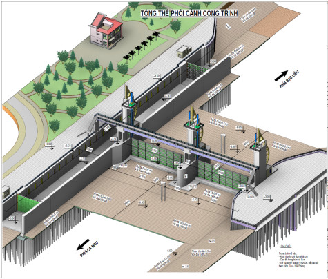 Tổng thể cống Âu thuyền Hộ Phòng được trình bày từ báo cáo nghiên cứu khả thi.