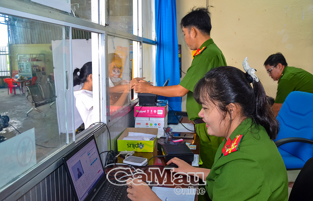 Nghị quyết XIV của Đảng đưa ra yêu cầu tiếp tục xây dựng lực lượng Công an nhân dân cách mạng, chính quy, tinh nhuệ, hiện đại. (Trong ảnh: Công an Xã Hồng Dân giải quyết thủ tục hành chính cho người dân).