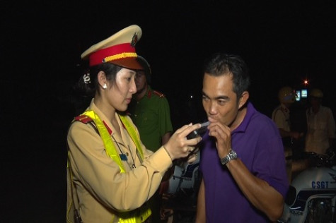 | Lực lượng chức năng ra quân kiểm tra vi phạm nồng độ cồn khi tham gia giao thông. |