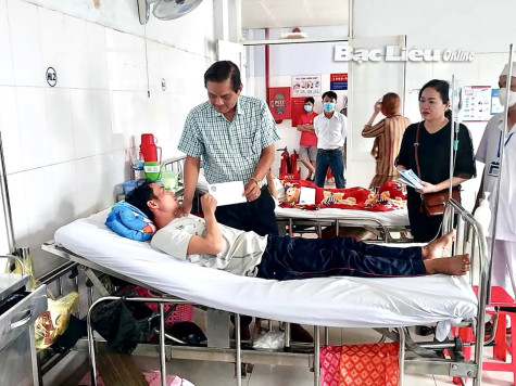 Thực hiện Chương trình "Mang tết ấm đến với bệnh nhân bảo hiểm y tế (BHYT) có hoàn cảnh khó khăn - Xuân Giáp Thìn 2024" do Bảo hiểm xã hội (BHXH) Việt Nam phát động, chiều 5/2, ông Lê Danh Đấu - Bí thư Đảng ủy, Giám đốc BHXH tỉnh đã đến thăm và tặng quà cho bệnh nhân có hoàn cảnh khó khăn phải ở lại điều trị tại Bệnh viện Đa khoa Bạc Liêu, không được về đón Tết cùng gia đình - (ảnh).