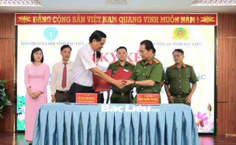 Bảo hiểm xã hội và Công an tỉnh ký kết hợp tác trong thực hiện Đề án 06. Ảnh: K.T