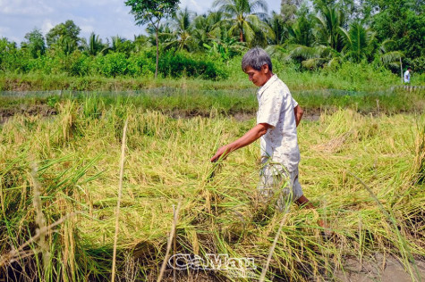 | Do không bơm nước kịp, gần 80% trà lúa của ông Nguyễn Văn Năng (Ấp 2, xã Tân Lộc Bắc) bị đổ ngã gây thiệt hại nặng. |
