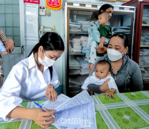 | Nhân viên y tế kiểm tra dinh dưỡng cho trẻ. |